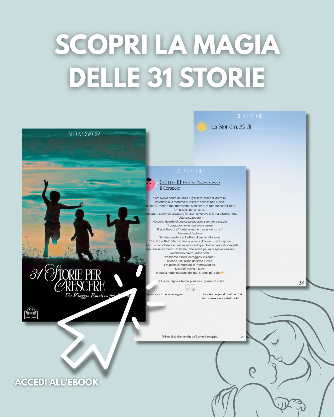 Ogni emozione capita è un passo verso un futuro migliore. Con 31 Storie per Crescere, regali a tuo figlio non solo un libro, ma 31 giorni di momenti preziosi insieme, pieni di dialogo, amore e comprensione.